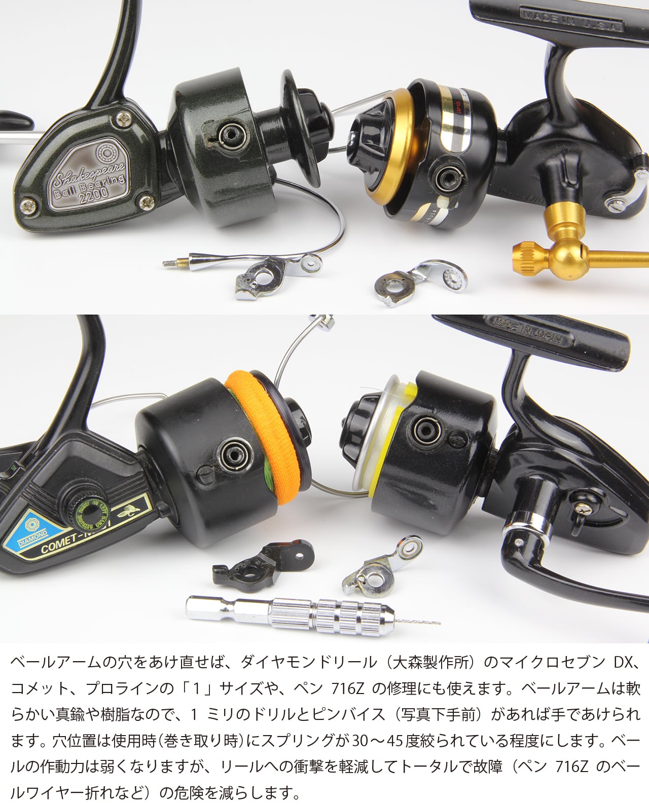 ミッチェル308/408のベールスプリングを、図面を起こしてばね会社で作りました。材質はばね用ステンレス鋼です。5巻きのスプリングが使用されているリールに適合します。