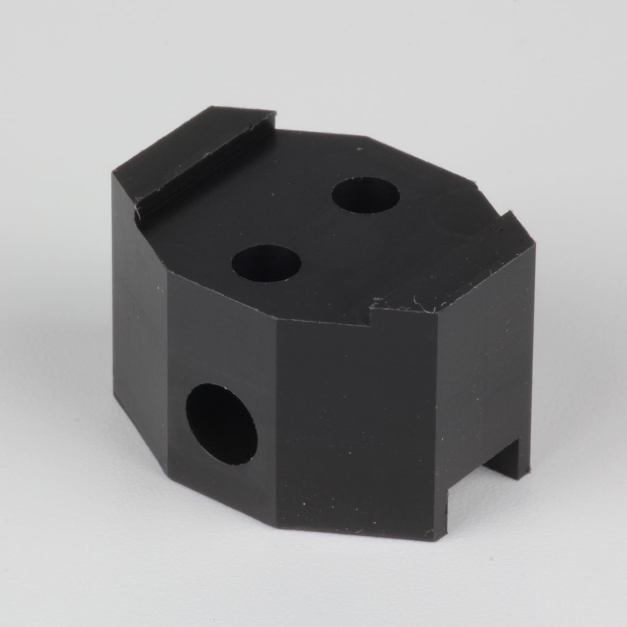 ジュラコン(ポリアセタール樹脂)から精密切削で作成しました。同じものは竹中が20年以上使っていて耐久性や強度は全く問題ありません。