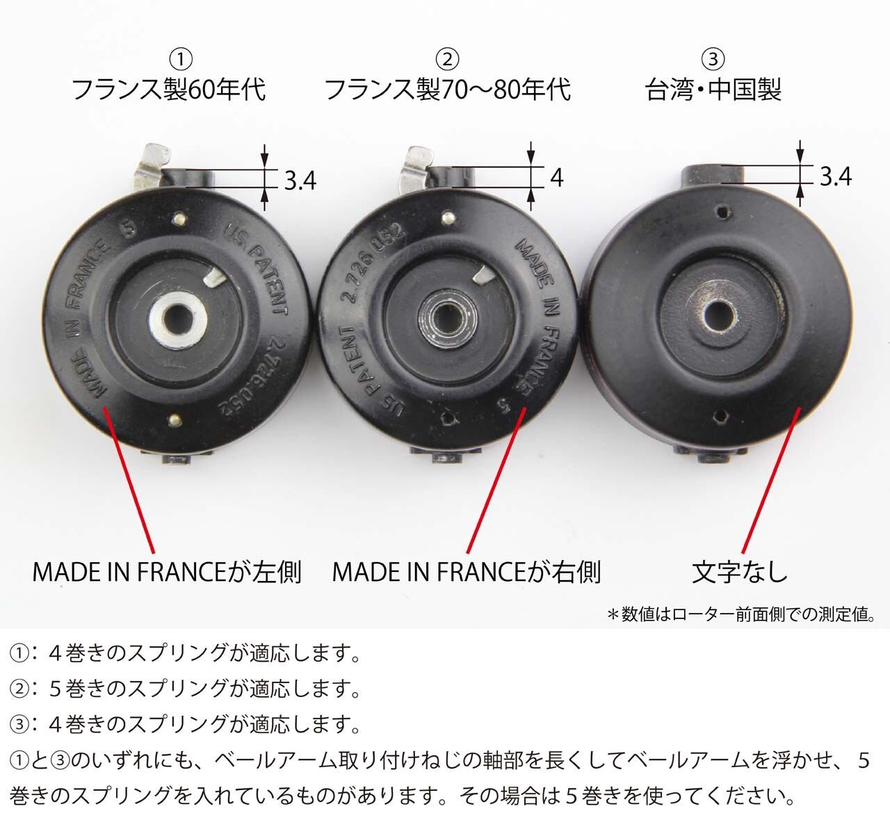 お持ちのリールのスプリングと巻き数が同じものを使ってください。前オーナーにスプリングが組み替えられているなどしていてわからない場合は、写真説明を参考にしてください。